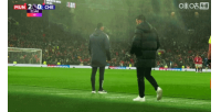 鏡頭給到場邊,阿莫林怒摔水瓶!