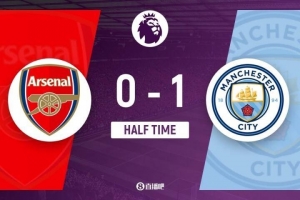 半場(chǎng)結(jié)束,阿森納暫0-1曼城。