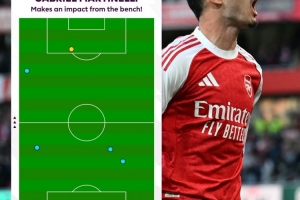 體育資訊9月22日訊 英超官方發(fā)布數(shù)據(jù),馬丁內(nèi)利替補(bǔ)登場(chǎng)后僅觸球5次,便為阿森納1-1逼平曼城。