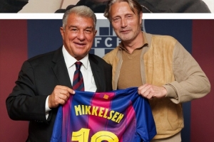 西甲第5輪比賽,巴薩主場3-0擊敗赫塔費(fèi)。麥斯-米科爾森來到現(xiàn)場觀看比賽,他與巴薩俱樂部主席拉波爾塔合影,并獲贈(zèng)巴薩10號(hào)球衣。