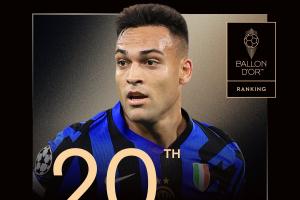 體育資訊9月23日訊 2025年金球獎排名陸續(xù)公布,國米前鋒勞塔羅獲得第20名,生涯第4次入選。