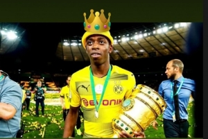 羅伊斯更新社媒動(dòng)態(tài),曬出登貝萊頭戴王冠的PS照片,祝賀前多特隊(duì)友獲獎(jiǎng)。