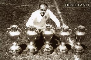 1953年9月23日,迪斯蒂法諾在對陣南錫的熱身賽中首次代表皇馬出場,他頭球攻入個人皇馬生涯首球。迪斯蒂法諾于1953年-1964年效力皇馬,在396場正式比賽中攻入308球,這位史上最出色球員帶隊獲得歐冠五連冠,他還獲得1次洲際杯冠軍、2次拉丁杯冠軍、8次聯(lián)賽冠軍等榮譽。個人層面,迪斯蒂法諾獲得5次西甲金靴。