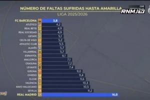 體育資訊09月23日訊 在新一期節(jié)目中,皇馬TV對(duì)比了各隊(duì)犯規(guī)數(shù)與黃牌數(shù)的情況,其中皇馬的對(duì)手平均16次犯規(guī)才會(huì)獲得1張黃牌,西甲最多,同時(shí)皇馬每6.6次犯規(guī)就會(huì)獲得1張黃牌;而巴薩的對(duì)手平均3.8次犯規(guī)就會(huì)獲得1張黃牌,西甲最少。
