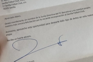 體育資訊9月23日訊 9月2日,塞維利亞簽下36歲智利前鋒桑切斯。巴薩發(fā)出賀信,祝賀舊將桑切斯加盟塞維利亞。
