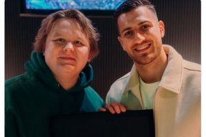 蘇格蘭知名歌手卡帕爾迪在曼徹斯特開(kāi)演唱會(huì),他獲贈(zèng)曼聯(lián)球衣,曼聯(lián)官方社媒曬出達(dá)洛特與卡帕爾迪的合照。