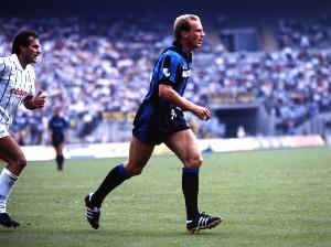 魯梅尼格今日迎來70歲生日。1984年夏他從拜仁轉(zhuǎn)會(huì)至國(guó)米,三個(gè)賽季(1984年-1987年)中在聯(lián)賽、杯賽和歐洲賽事共出場(chǎng)107次,攻入42球。國(guó)米球迷銘記他的身體素質(zhì)、強(qiáng)大力量、領(lǐng)袖氣質(zhì)以及那些難忘的進(jìn)球:從聯(lián)賽首秀對(duì)陣尤文的破門,到德比戰(zhàn)的精彩進(jìn)球,再到對(duì)陣都靈時(shí)那記半轉(zhuǎn)身凌空抽射,以及歐洲杯賽中的諸多精彩破門。身披國(guó)米戰(zhàn)袍期間,魯梅尼格展現(xiàn)了全部的天賦。在其輝煌職業(yè)生涯中,他曾兩獲金球獎(jiǎng),這更是對(duì)其非凡實(shí)力的進(jìn)一步認(rèn)可。