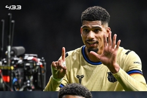 阿勞霍此役為巴薩頭球破門,他進(jìn)球后做出6號手勢致意加維,后者接受膝蓋手術(shù)將長期缺席。