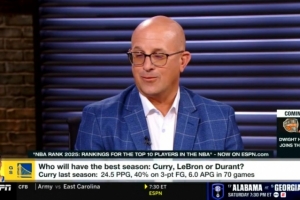 昨天,ESPN公布了新賽季百大球員,庫(kù)里第7、詹姆斯第8、杜蘭特第9。