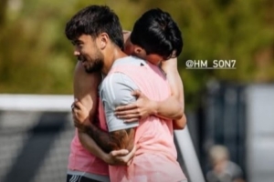 體育資訊9月26日訊 效力洛杉磯FC的華裔球員伍小海更新社媒,曬出自己在訓(xùn)練中和隊(duì)友孫興慜的擁抱照。