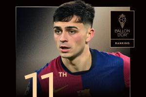 佩德里今年金球獎排名第11名,落后第十的努諾-門德斯47分。