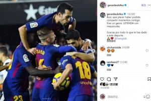 德烏洛費烏社媒曬出與布斯克茨等隊友慶祝的合照,配文:“布斯克茨,很榮幸與你共度那些美好時刻,你是天才,名副其實的傳奇,感謝你為這項運動奉獻的一切?!?/p>