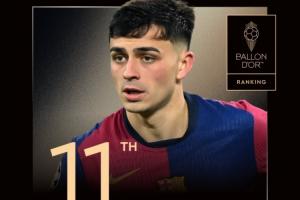體育資訊09月27日訊 今日《法國足球》官方公布了金球獎評選的投票細(xì)節(jié),其中西班牙/巴薩中場佩德里在100位記者中僅獲得了31人的投票,最終獲得124分,位列金球第11名,落后第10的努諾-門德斯47分。