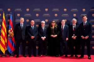 機(jī)構(gòu)副主席埃萊娜-福特、社交領(lǐng)域副主席安東尼奧-埃斯庫(kù)德羅、橄欖球主管何塞普-瑪麗亞-阿爾伯特、社交領(lǐng)域主管何塞普-伊格納西-馬西亞、女子足球主管哈維爾-普吉、手球主管董事瓊-索萊以及青少年足球主管董事瓊-索勒,共同在巴塞羅那籃球館舉辦的隆重儀式上完成了獎(jiǎng)?wù)骂C發(fā)。在諾坎普球館舉行的這場(chǎng)儀式上,巴薩吉祥物到場(chǎng)助興,兩位主持人以及大屏幕上的不同視頻播放也為活動(dòng)增添了氛圍。