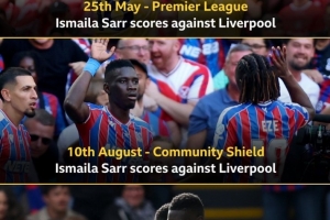 體育資訊9月27日訊 在本輪英超水晶宮對陣?yán)锲值谋荣愔?,薩爾率先破門。