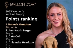 體育資訊9月28日訊 《法國足球》公布了2025年首屆女足雅辛獎的投票結(jié)果,英格蘭國家隊(duì)兼切爾西門將漢娜-漢普頓以壓倒性優(yōu)勢歷史性地奪得該獎項(xiàng)。