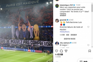 在社交媒體上,恩里克感謝了球迷們的支持,他寫道:感謝這個(gè)TIFO,這樣的場(chǎng)面令人難以忘懷。