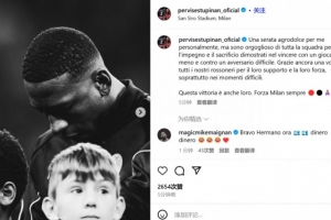 埃斯圖皮尼安特意用意大利語寫道:“對我個(gè)人來說,這是一個(gè)苦樂參半的夜晚,但我為整支球隊(duì)感到驕傲,大家在少一人應(yīng)戰(zhàn)、面對強(qiáng)敵的情況下,展現(xiàn)出了巨大的投入和犧牲精神,最終贏下比賽。”