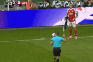 阿森納客戰(zhàn)紐卡第28分鐘,阿森納獲得前場(chǎng)左路邊線球,卡拉菲奧里從場(chǎng)邊撿了毛巾準(zhǔn)備擦球,這位邊后衛(wèi)想擲出大力邊線球。不過(guò)當(dāng)值主裁吉萊特不允許這么做,他從卡拉菲奧里手上拿走毛巾,并扔至場(chǎng)外。