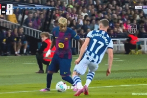 亞馬爾本場(chǎng)比賽再次展現(xiàn)高超技術(shù),在邊路做出一次牛尾巴穿襠,輕松過(guò)掉了防守他的塞爾吉奧-戈麥斯。