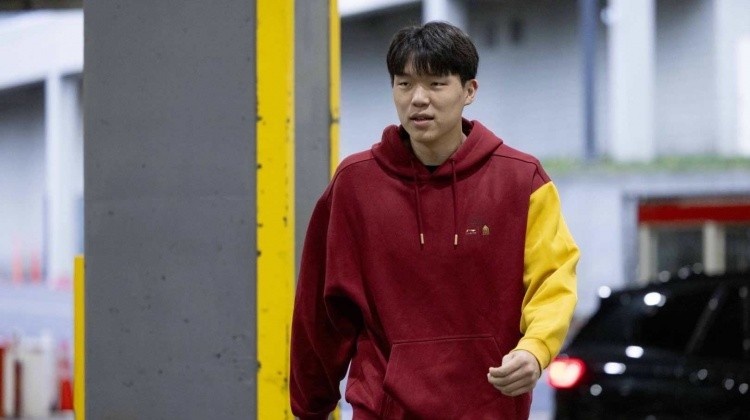 從圖中可以看到,楊瀚森穿著一件紅黃色衛(wèi)衣來到球館。