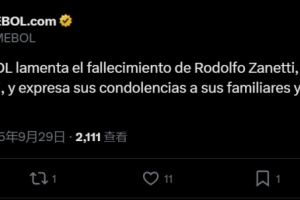 體育資訊9月30日訊 國米、阿根廷名宿薩內(nèi)蒂的父親在不久前去世,南美足聯(lián)也發(fā)推表示了哀悼。