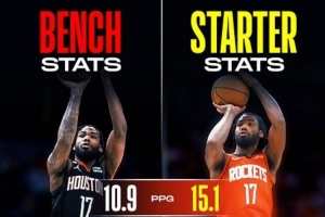 體育資訊9月30日訊 美媒Clutchpoints曬出了火箭球員塔里-伊森上賽季打先發(fā)和打替補(bǔ)時(shí)的數(shù)據(jù)對比。
