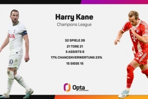 體育資訊10月1日訊 根據(jù)統(tǒng)計,凱恩為拜仁出戰(zhàn)26場歐冠,已經(jīng)打入了21粒進(jìn)球,這一數(shù)字已經(jīng)追平了他在熱刺效力期間32場歐冠比賽的總進(jìn)球數(shù)。
