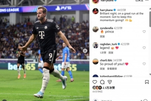 賽后凱恩也在個人社媒曬出慶祝進(jìn)球照片,配文寫道:“精彩的夜晚,球隊(duì)勢頭不錯,讓我們繼續(xù)延續(xù)下去!”
