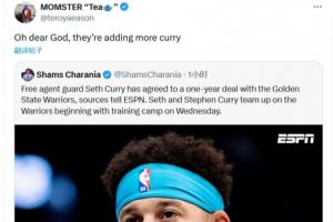 火箭隊球員伊森的母親轉(zhuǎn)發(fā)相關報道,評論道:“我的天哪,他們加了更多的‘咖喱’(Curry)。”
