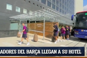 體育資訊10月1日訊 西班牙六臺節(jié)目El Chiringuito曬出視頻,巴薩球員已經抵達酒店。