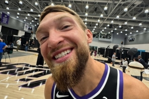 其中,小薩博尼斯和德羅贊滿臉笑意,拉文與新援施羅德鏡頭前一臉嚴(yán)肅。