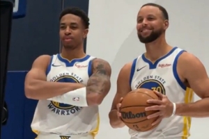 體育資訊10月2日訊 在勇士媒體日上,庫里正在拍攝定妝照。