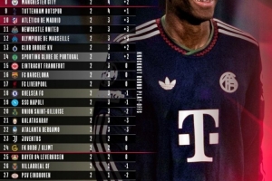 兩戰(zhàn)全勝的球隊包括拜仁、皇馬、巴黎、國米、阿森納、卡拉巴赫,而拜仁與皇馬同為6個凈勝球,拜仁以多進一球優(yōu)勢領跑。