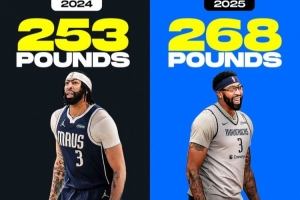 目前AD的官方體重已達(dá)268磅(約121公斤),上賽季球隊(duì)為其登記的體重為253磅(約115公斤)。