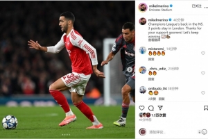 阿森納中場梅里諾社媒曬出比賽照片,并寫道:“歐冠重回北五區(qū),將3分留在倫敦?!?/p>