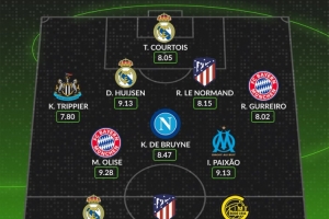 后衛(wèi):特里皮爾(紐卡)、赫伊森(皇馬)、勒諾爾芒(馬競(jìng))、格雷羅(拜仁)