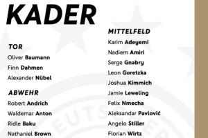 體育資訊10月02日訊 德國隊公布了新一期世預賽名單,沃爾特馬德、維爾茨領銜,基米希、格雷茨卡、格納布里在列,薩內(nèi)落選。