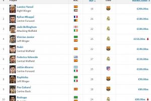 體育資訊10月02日訊 德轉(zhuǎn)今天發(fā)布了最新一期西甲身價(jià)更新,西甲前十身價(jià)也迎來(lái)些微的變化,最新西甲身價(jià)前十如下: