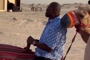 馬布里發(fā)博,與尼克斯名宿帕特里克-尤因、阿蘭-休斯頓以及現(xiàn)役尼克斯球員阿努諾比感受阿布扎比風(fēng)土人情,并寫(xiě)道:“十一假期來(lái)阿布扎比參加尼克斯球隊(duì)Party!你們猜駱駝累不累~??”