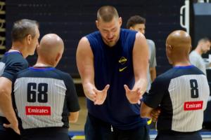 在對抗賽結束之后,約基奇拉著三位裁判討論判罰的具體細節(jié),記者稱,約基奇拉著三位裁判問了大約20分鐘。