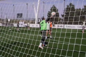 皇馬正在備戰(zhàn)這場比賽,瓊阿梅尼在訓練中側身勾射破門,技驚四座,隊友紛紛驚呼。