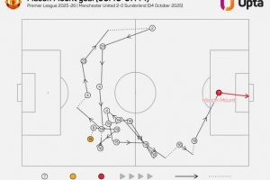 據(jù)統(tǒng)計(jì),芒特進(jìn)球前經(jīng)過(guò)18次傳球,這是本賽季英超進(jìn)球中最多,而曼聯(lián)上一次進(jìn)球前有如此多傳球還在2023年9月(B費(fèi)進(jìn)球)。