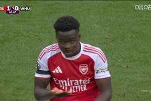 體育資訊10月04日訊 英超第7輪,阿森納vs西漢姆聯(lián)。比賽第60分鐘,薩卡被對手打到臉部,鼻子出了點(diǎn)血。