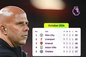 據(jù)英超官方統(tǒng)計(jì),2024年10月之后,利物浦首次在比賽周結(jié)束時未能處于英超榜首位置。