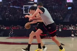 10月5日開(kāi)拓者球迷嘉年華活動(dòng),楊瀚森秀腳步,單打克林根勾手命中