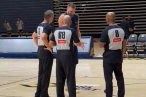 在訓(xùn)練賽結(jié)束后,尼科拉-約基奇花了至少10分鐘與裁判們進行了交流和示范教學(xué)。