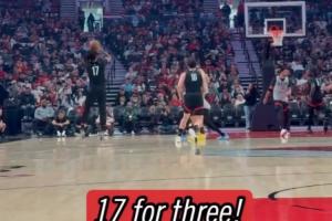 GIF-開拓者球迷嘉年華隊內(nèi)表演賽,楊瀚森和夏普手遞手配合,后者接球漂移三分落袋