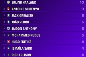 哈蘭德成本賽季英超首位直接參與進(jìn)球數(shù)上雙球員,塞梅尼奧9球