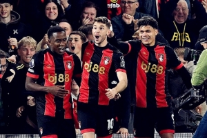 在英超第7輪率先開(kāi)打的一場(chǎng)比賽中,伯恩茅斯憑借塞梅尼奧的梅開(kāi)二度以及小克魯伊維特的進(jìn)球,主場(chǎng)逆轉(zhuǎn)富勒姆。首輪輸給利物浦時(shí),伯恩茅斯曾被很多媒體預(yù)測(cè)為本賽季的降級(jí)大熱門(mén),但伊勞拉和弟子們很快以6輪不?。?勝2平)的表現(xiàn)粉碎了輿論的質(zhì)疑。擊敗富勒姆之后,伯恩茅斯一度占據(jù)英超積分榜第二位(目前排名第4),創(chuàng)造了隊(duì)史頂級(jí)聯(lián)賽最佳開(kāi)局。